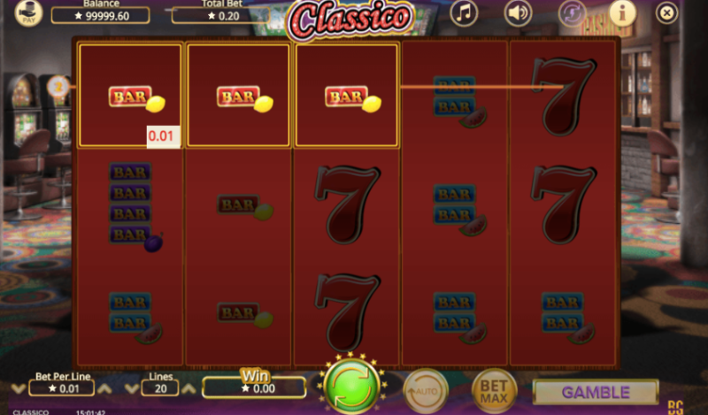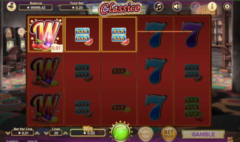 Classico is a slot machine with five reels and 20 ways to win. The minimum bet you can place is 0.03 credits, while the maximum bet is three credits. As with other slot machines, your potential prize is directly proportional to your bet.The minimum number of coins per line is 1. The game has a 96% return to player (RTP), which means your chances of winning are good. During gameplay, you will encounter various icons, including the wild symbol represented by the big W and the scatter represented by the bell.