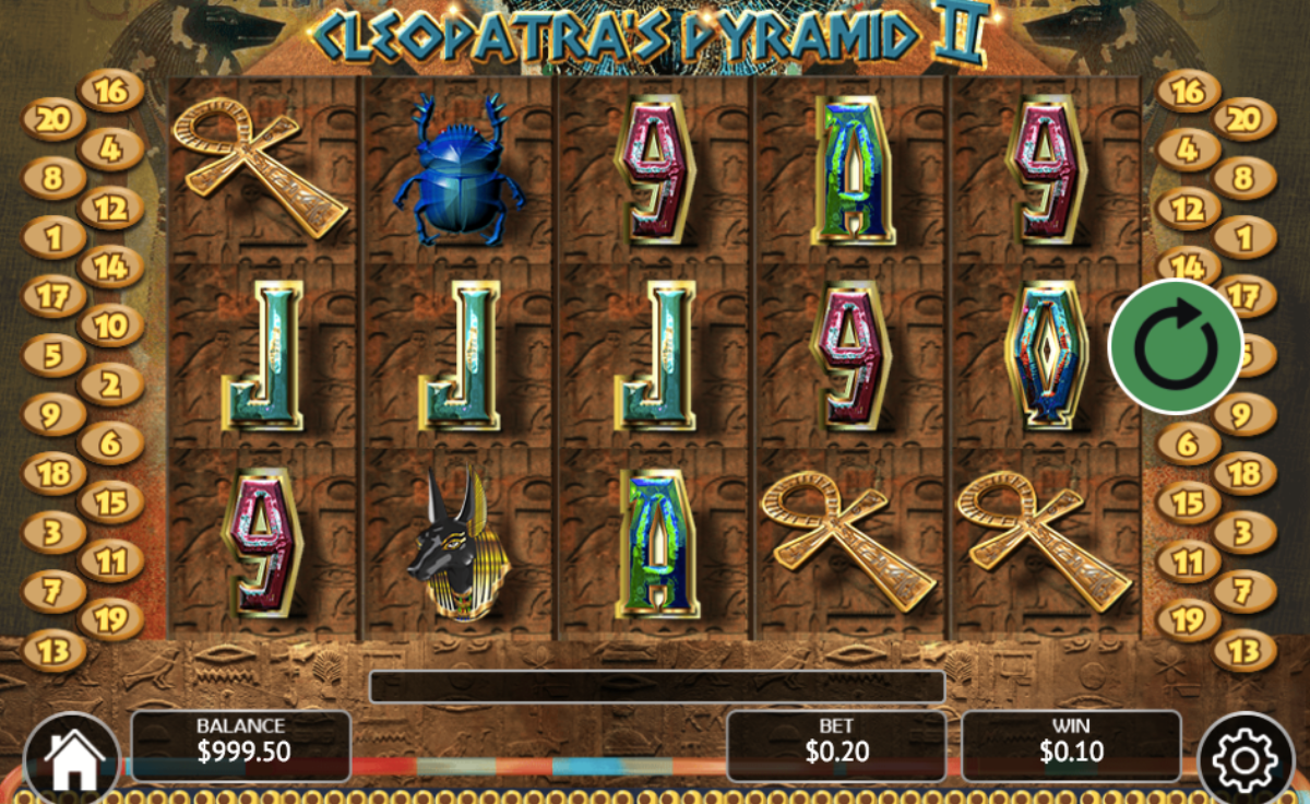 Cleopatra’s PyramidΒ has a vast betting range. That is little as one penny per spin and is much as $200 per spin. Increase and decrease your wagers by clicking the arrow buttons on the coins and pay lines.
