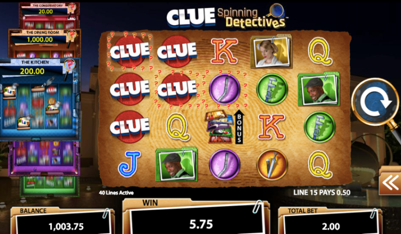 The Cluedo Spinning Detectives is a video slot designed by WMS with 5 reels and 40 paylines. It is based on the popular board game “Clue” and has six different game modes that change the backdrop design. The game features wilds, free spins, scatters, and a bonus game. There is also a top progressive jackpot of $250,000 available.