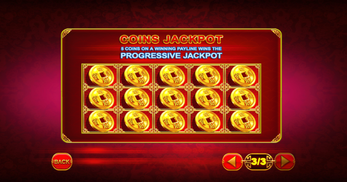 The video slot game, Coin! Coin! Coin!, has a RTP of around 97%. Its progressive jackpot is the main highlight of the game.