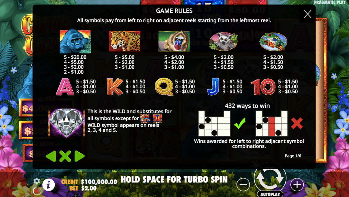 Congo Cash plunges you into the depths of the African jungle, and while Pragmatic Play could have spruced up its background imagery more, the game’s graphics and animations look phenomenal!Â