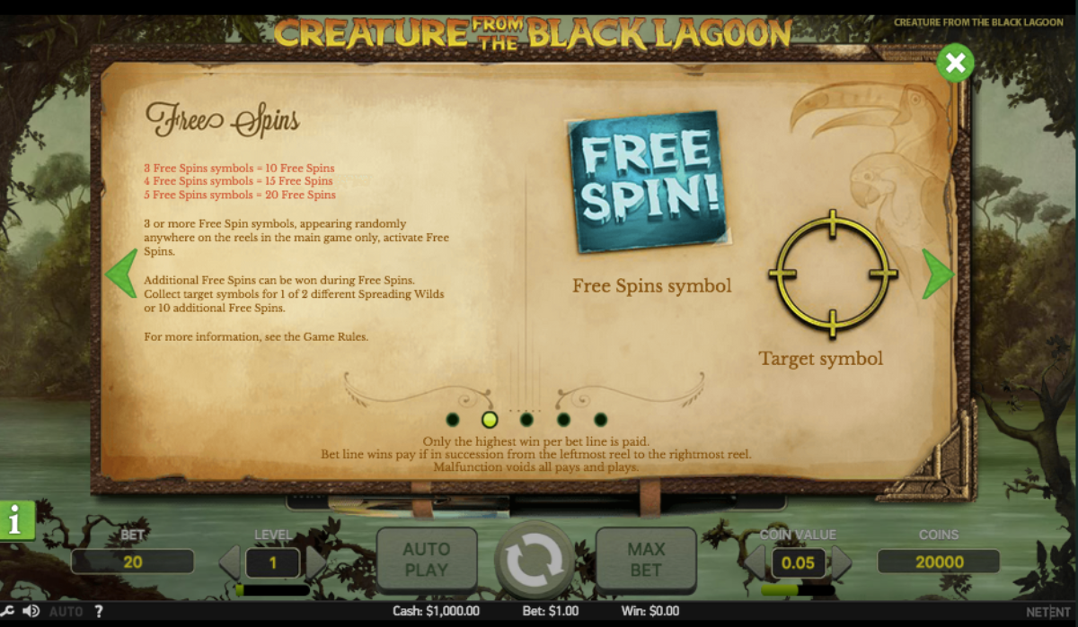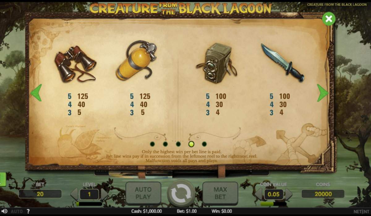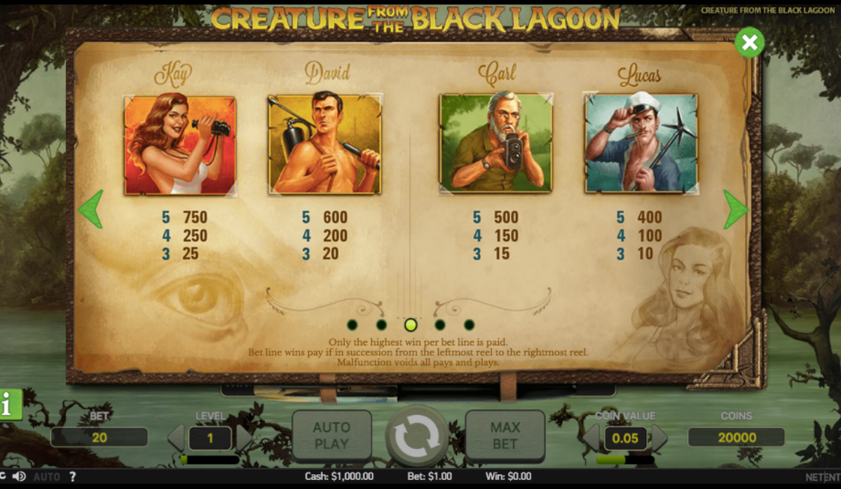 Overall Creatures From The Black Lagoon slot machine is one of the better Net Entertainment casino games in our opinion. The things that could make it better is attaching a progressive jackpot and increasing the betting limit. Besides those two things this game is fun, it has great graphics, excellent storylines, and decent wins.