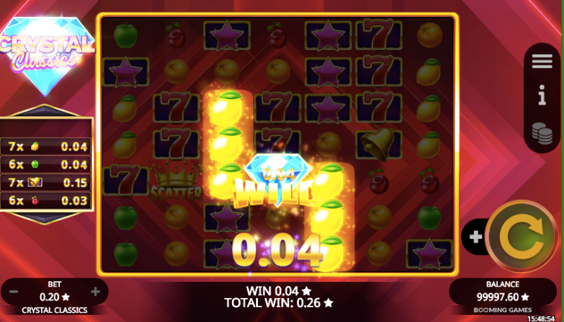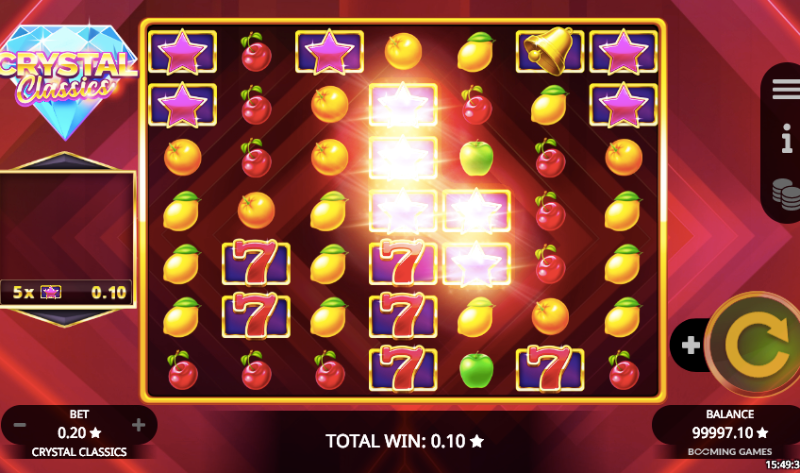 Crystal Classics operates with a cluster pay system, which means that symbols that form clusters or groups next to each other will result in a payout.