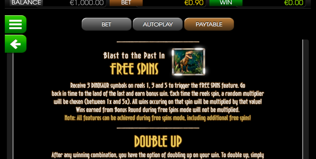 Experience the Blast to the Past feature and unlock the excitement of 3 or more free spins, along with the thrilling possibility of a 5x multiplier. This incredible feature comes to life when you land at least 3 Dinosaur bonus symbols on the reels. Get ready to embark on a prehistoric adventure like no other!