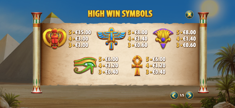 The jackal god Anubis is a special symbol. If it lands on reels 2, 3 or 4, it will trigger a feature that makes the whole reel wild. The wild reels also come with extra money that can increase your payout by 1x, 2x, 3x, 5x, 10x, 15x or 25 times!