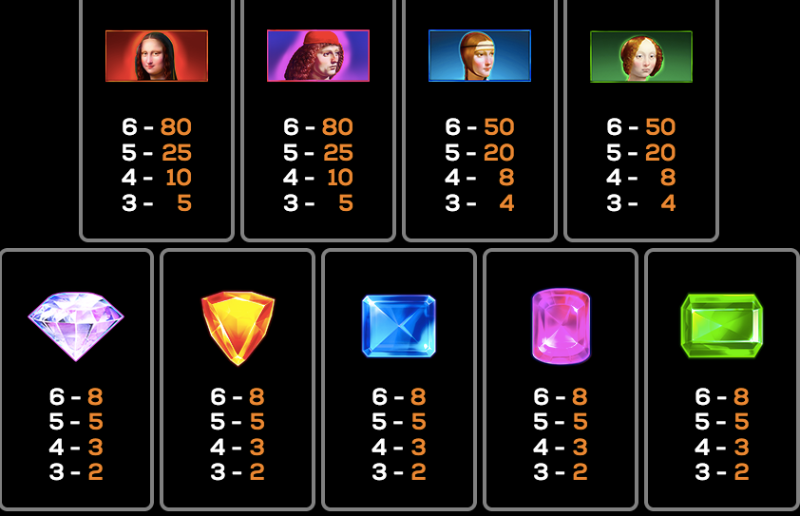 If the symbols seem familiar, it’s because Da Vinci Creations is part of a range that uses the same images. Four Leonardo Da Vinci portraits – including Mona Lisa – are featured on this game, and five colorful jewels can be found. This is a cylindrical book in Leonardo da Vinci’s workshop. He has lots of other inventions, too.