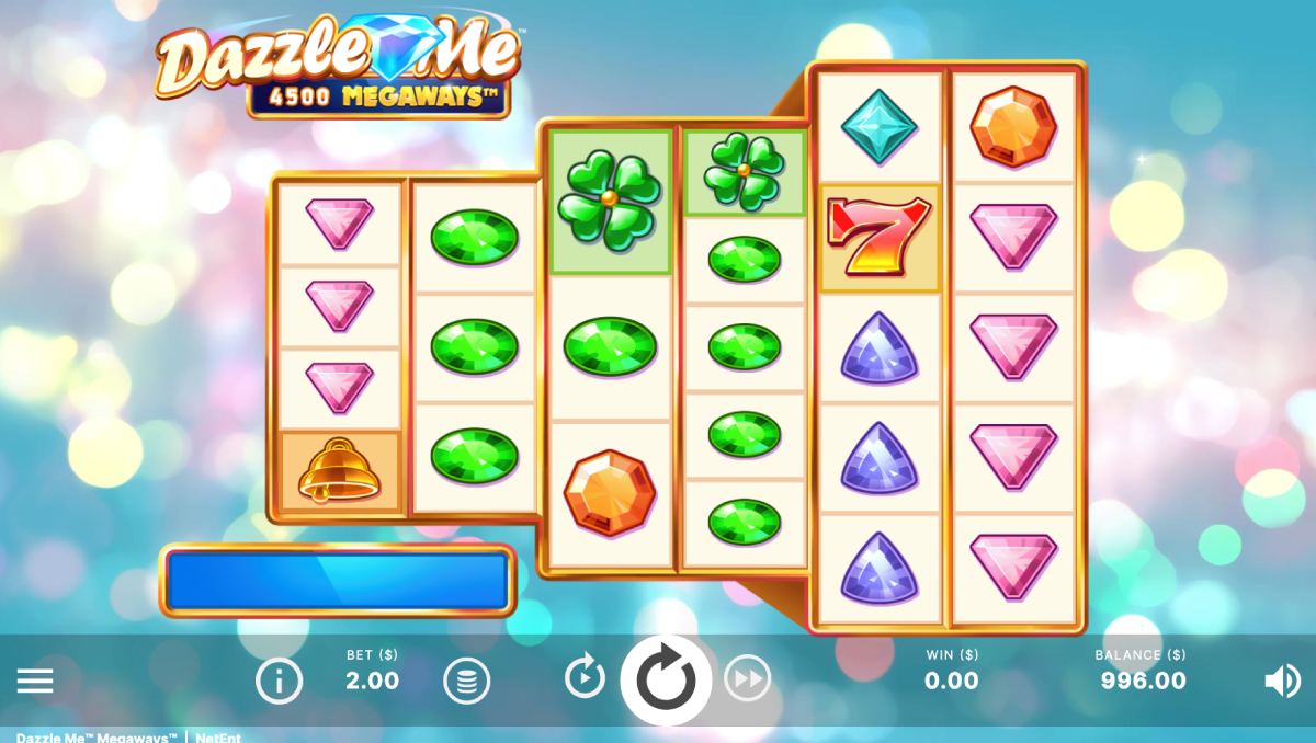 NetEnt’s Dazzle Me Megaways slot machine has an RTP rate of 96.1%, which is lower than the original Dazzle Me slot machine (which has an RTP rate of 96.91%).