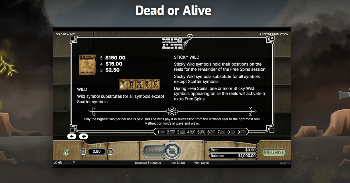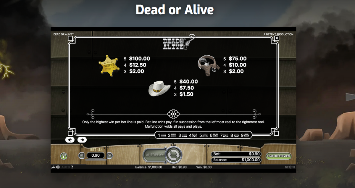 Dead Or Alive Slots Bonuses, Reviews, Payouts, Rating, Paytable, Ranking, & RTP%