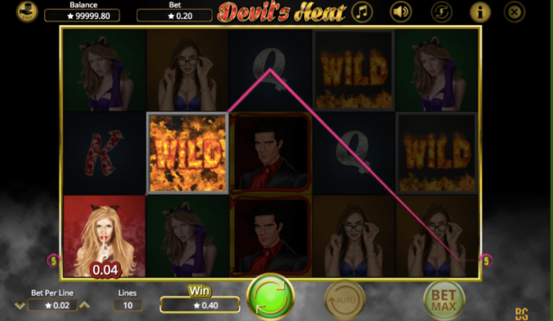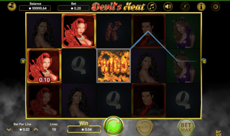 Devil’s Heat has 5 reels and 10 lines. There are a devil and devil-woman symbols, as well special features such as female characters with black, red, brown, and green hair, to create an exciting devil-themed experience.In the Devil’s Heat video slot machine, there is a king and queen symbol that adds to the game’s overall experience.