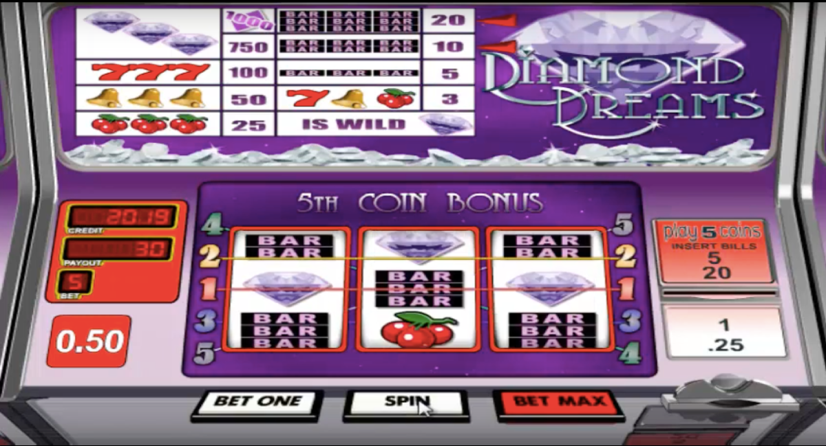 The Diamond Dreams slot machine is a very traditional game and as a diamond theme to the point where you literally will be digging for the diamonds.The game is very similar to other games such as Double Diamond or Triple Diamond. This game is very popular, and it has decent wins.