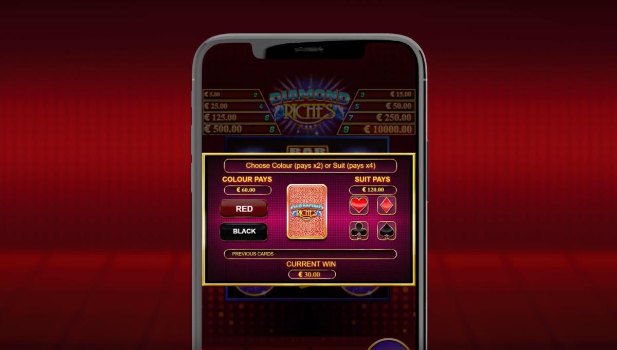 The Diamond Riches slot game is available on various devices such as PC, Android, iOS, or Windows mobiles. You can find the game on the top Booming Games sites. The game has high volatility and its average payback percentage is 95.47%.