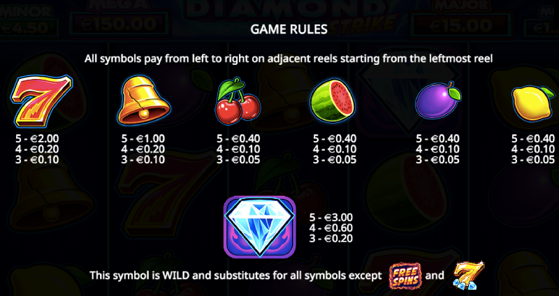The design of Diamond Strike is straightforward, and experienced players will have no trouble understanding it.