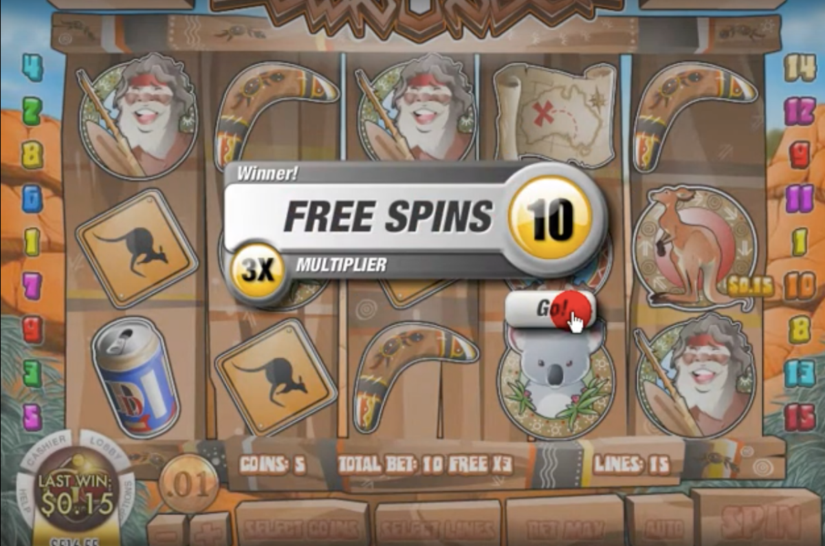 When you land 3 to 5 of the Aborigines scatter symbol that is complete with their tribal markings and scary Spears you were in store for some big wins. You will trigger the free game bonus, during this free spin bonus game you can retrigger it by landing more Aborigines on the reels.