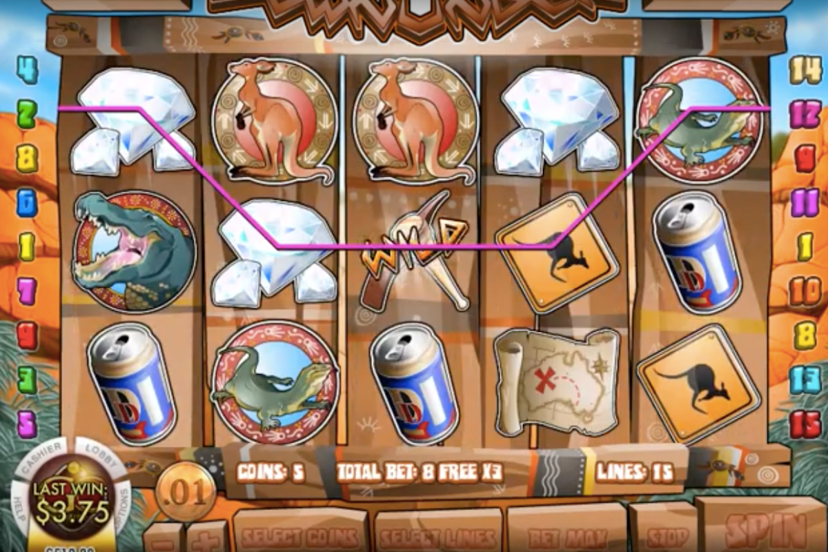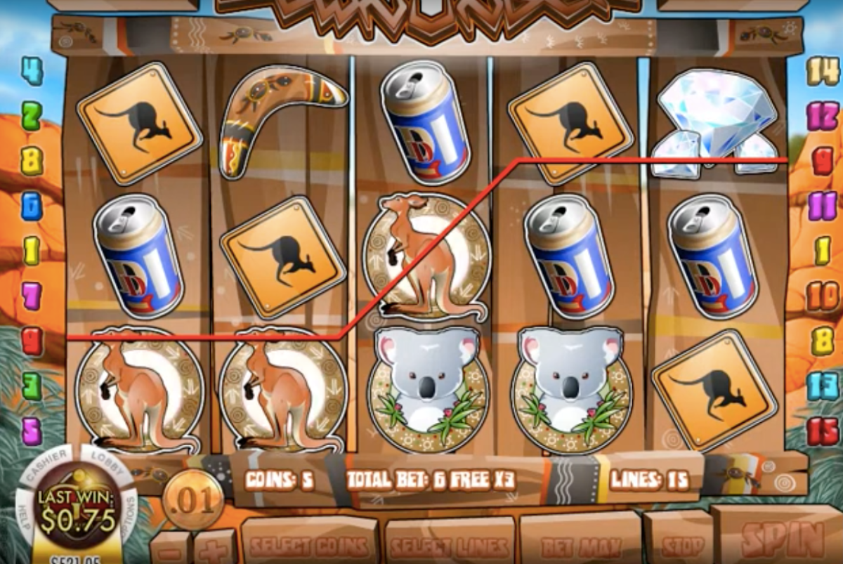 While this game did not feature a progressive jackpot to when it does have some very cool features and some other ways to win including the 5000 fixed coin jackpot. You also have very cool slot features like the treasure maps, Wild Pick Axes, Scattered Aborigines and Cans of Fosters.