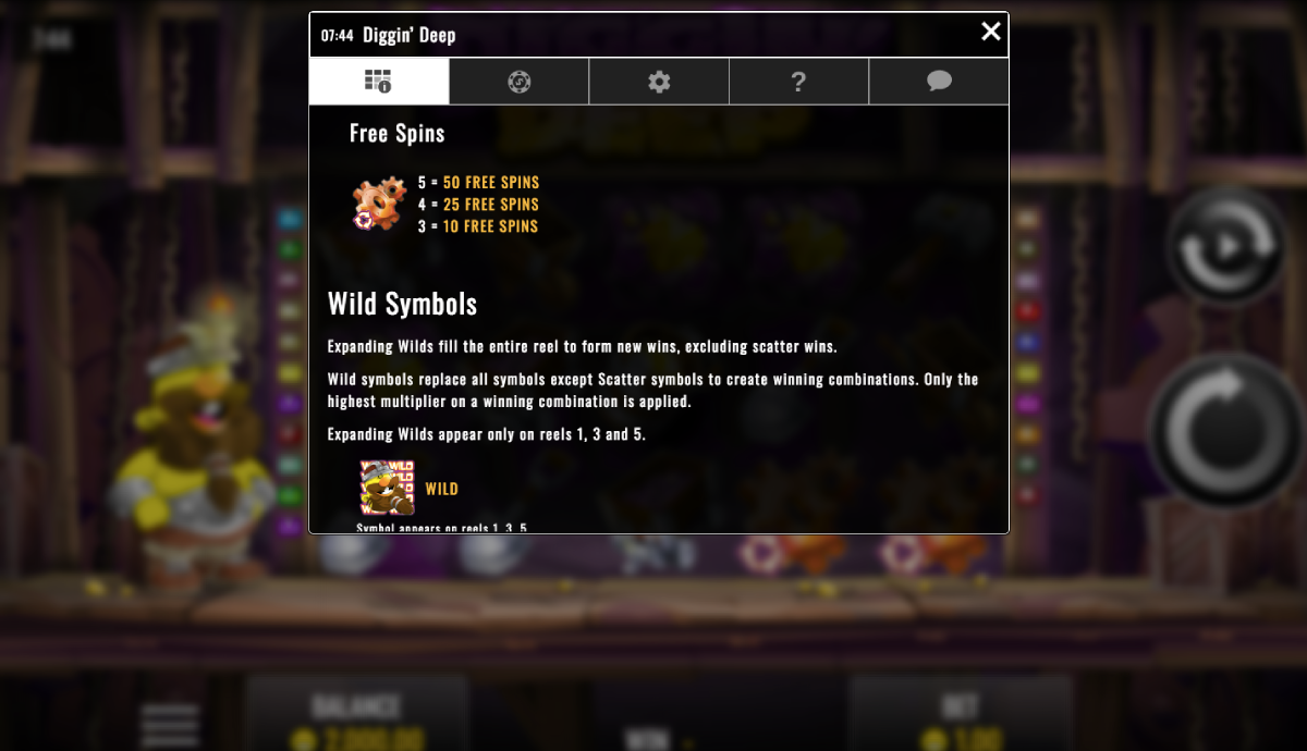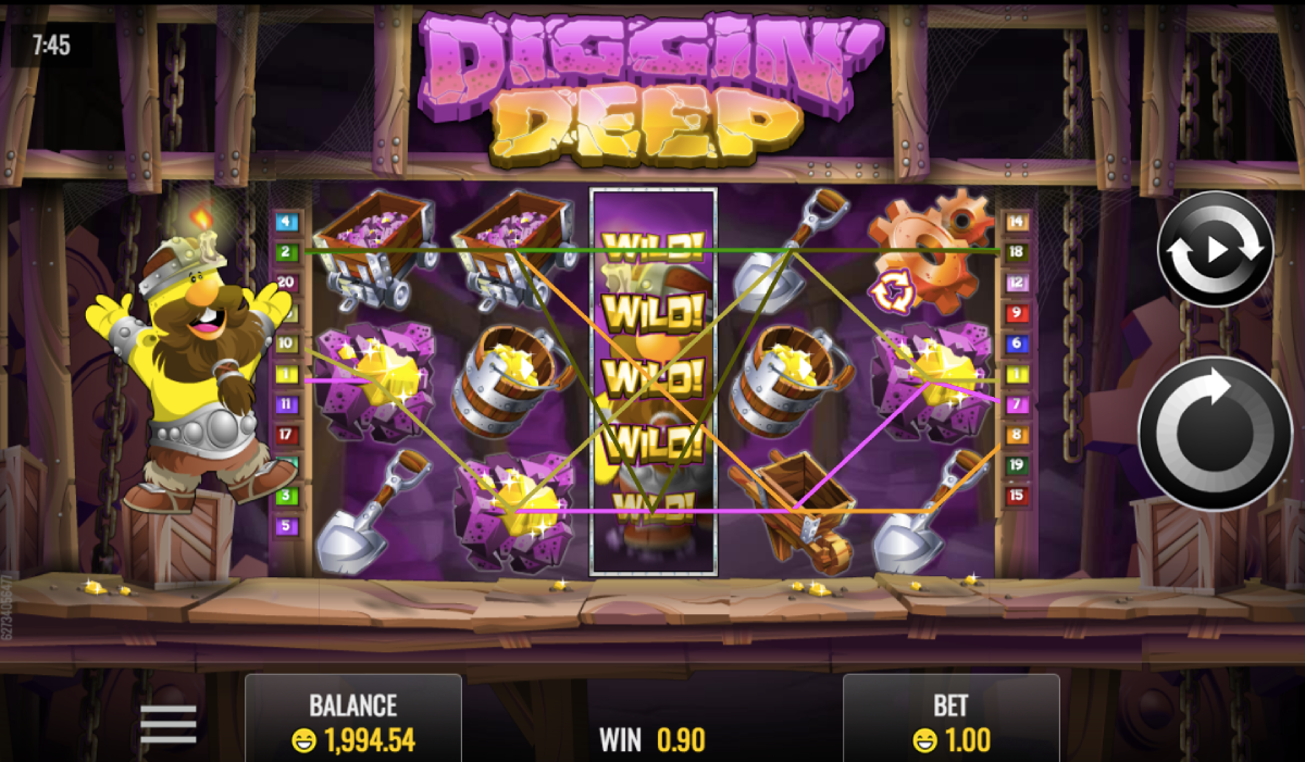 The Diggin’ Deep slot game features five reels with 20 pay lines. Rival software providers power this video slot machine. This game played on your desktop, laptop computer, mobile smartphone or your tablet. Diggin’ Deep has a gold digging theme to it. Back in the mid-1800s in the United States of America, there was the “gold rush.”