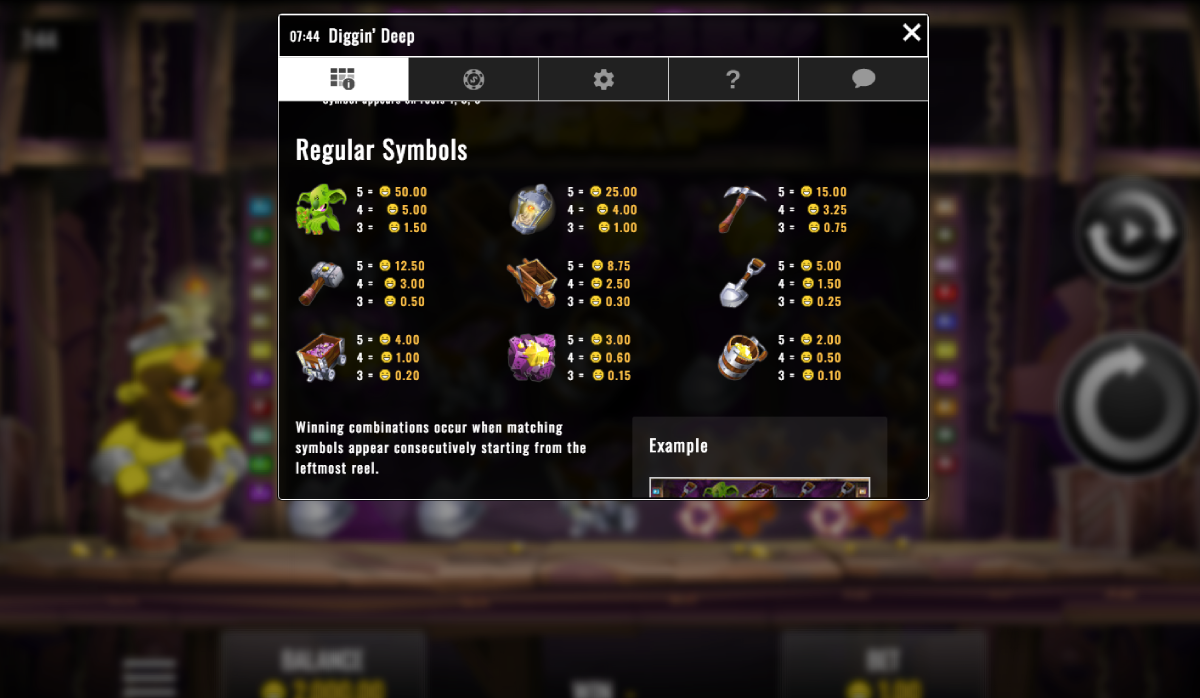While you play Digging Deep keep your eyes open for the lamps. They are imperative because when you land five the lamp symbols on the wheels, you will win by triggering the multiplier by 500 times your initial bets.