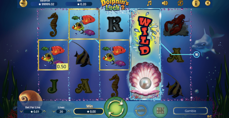 Dolphin’s Luck 2 is a slot machine that features 5 reels, 3 rows, and 20 paylines that cannot be changed. However, you can still adjust your bet amount with a minimum of €0.01 and a maximum of €40. Check out a separate section of this review for more information regarding the slot’s paytable and bonus features.
