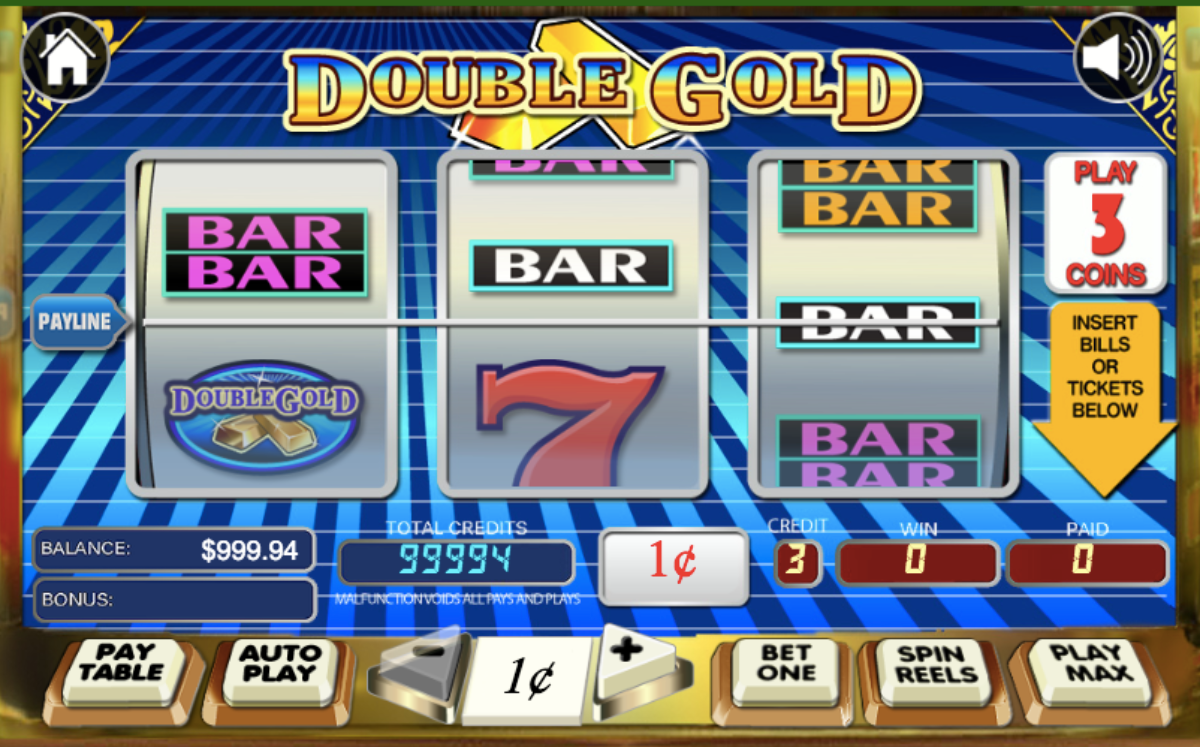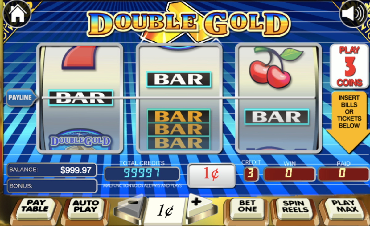 Start betting with as little as a penny per spin playing double Gold. High rollers may not like this game. Three dollars is the most that you did that per spin. You can bet one, two or three coins but wagering three coins equals three dollars.