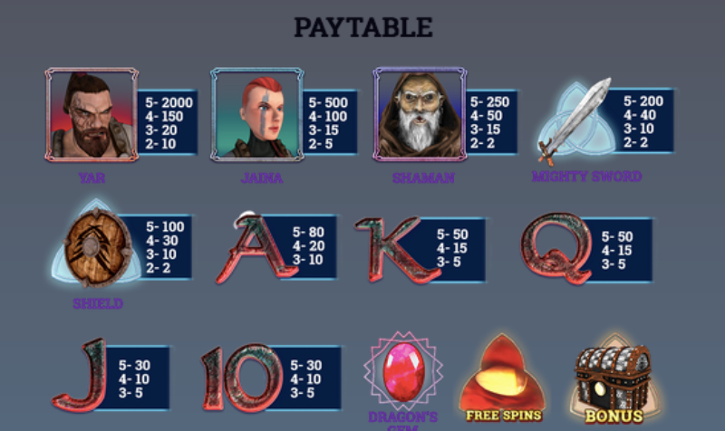 Dragonâs Cave is a slot game with a dramatic theme and imagery of war. The top symbols include two warriors and a shaman, as well as a sword and shield. The lower symbols are the usual playing card symbols. However, there are many other reasons why Dragonâs Cave is popular beyond just the paytable.
