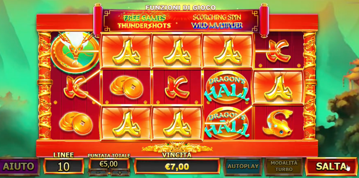 Playtech has an online slot game called Dragon’s Hall Thundershots, which is part of a series of three other Thundershots games.The bonus wheel adds excitement to the slot and increases the potential winnings. With various opportunities to win, it is definitely worth playing this slot that is set in the east.
