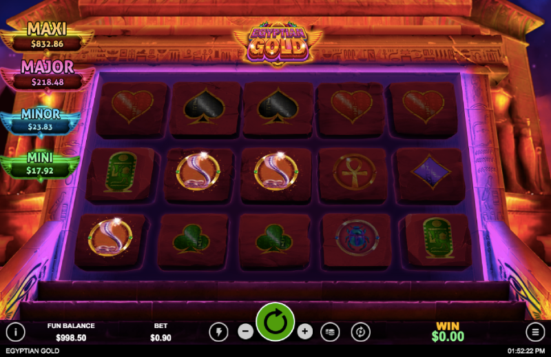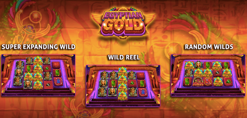 The design of Egyptian Gold is based on ancient Egyptian culture, with the temple and hieroglyphs shown in the background.