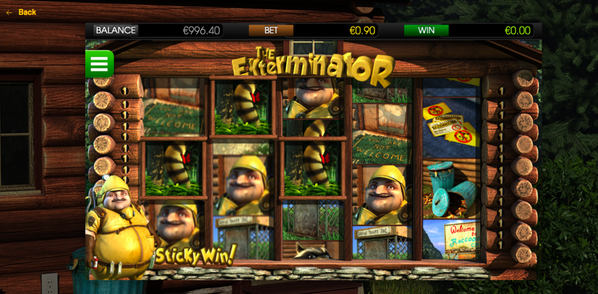 The symbols that you will see when you turn the reels playing The Exterminator are excellent. Enjoy seeing the unwanted pests that need to be exterminated such as a raccoon, rodents, termites, Alvin, a Truck, Dustbins, Footprints, a Welcome Mat, other bugs as well as war unwanted guests. In addition to the symbols of the wheels, you will be trying to help Alvin the Exterminator catch the Raccoon.