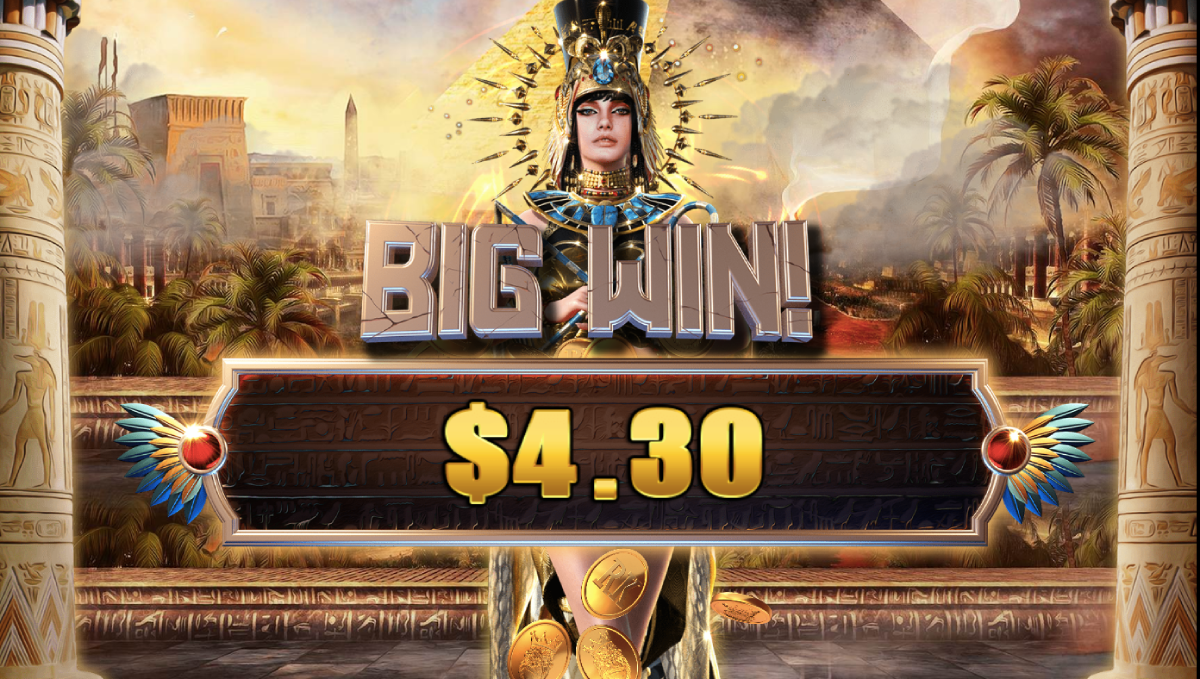 So, five Eye of Horus symbols will get you the top prize of 500x your stake. However, don’t forget to look out for the Queen. Although she doesn’t pay anything herself, as the Wild she does substitute for any other symbol and will help you complete wins. You will only see her appear on the middle three reels but she will expand across the rows to make sure you get a winner.