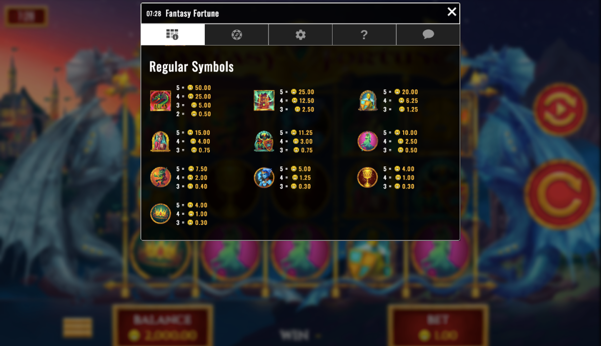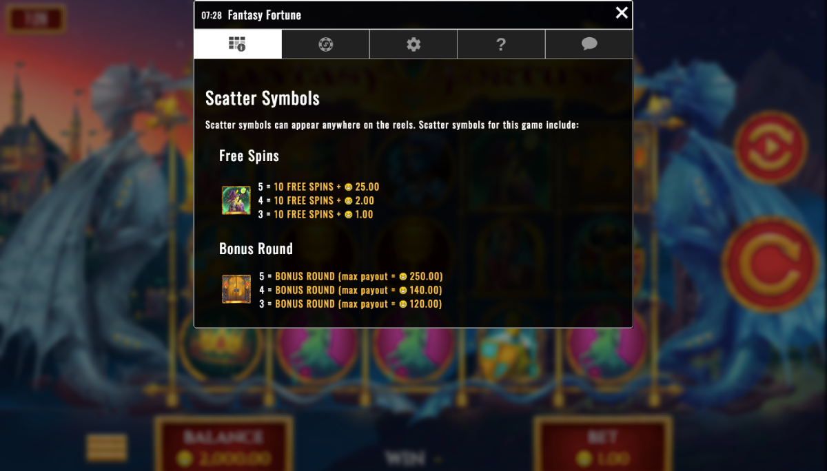 Win up to 50,000 coins when you line up five of the Jackpot castles on the wheels. If you land three the castles, you shall win 2500 coins, but land four of the Jackpot Castle symbols and you will win 10,000 coins.