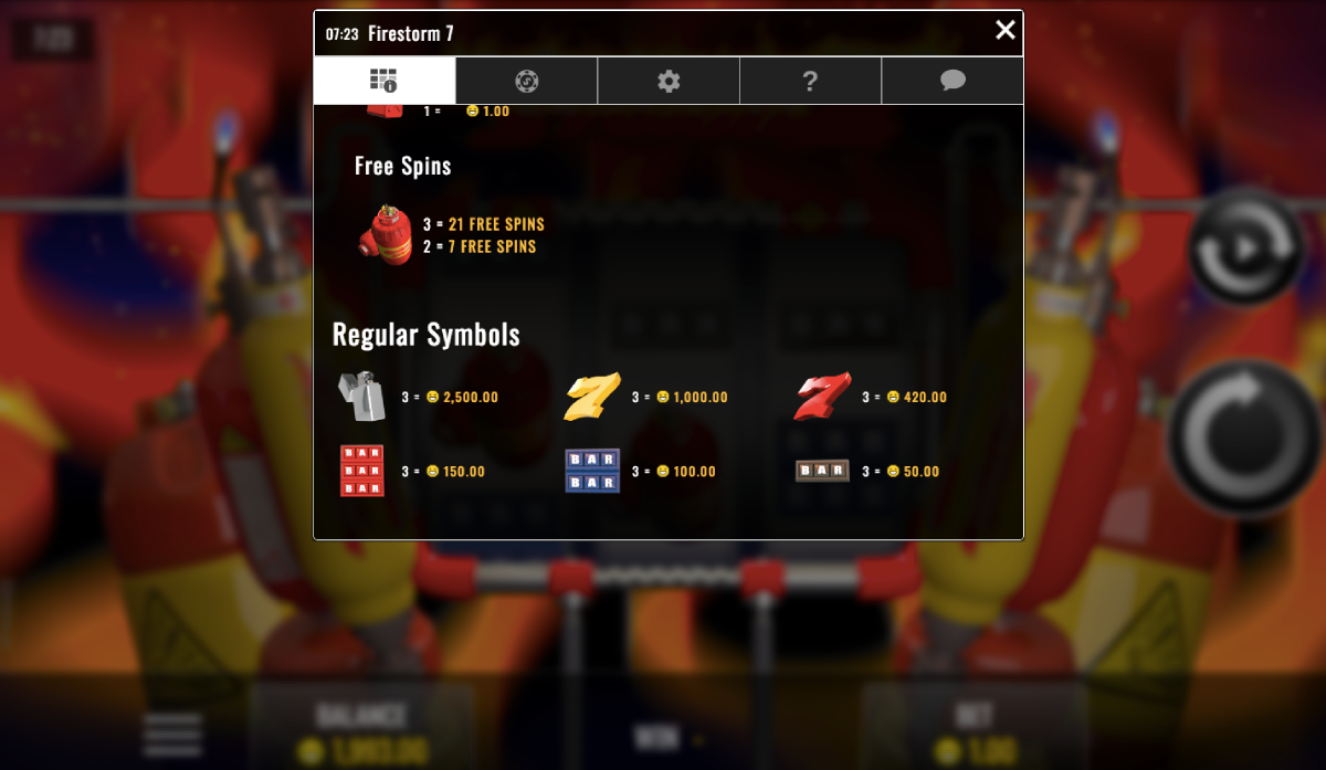 Firestorm 7 game three reels with one pay line plus it has three-dimensional graphics. Rival software provider powers this classic slot machine. Enjoy yourself on your desktop or laptop computer.