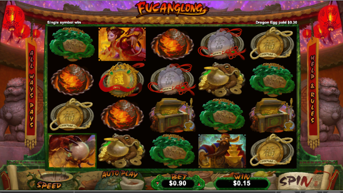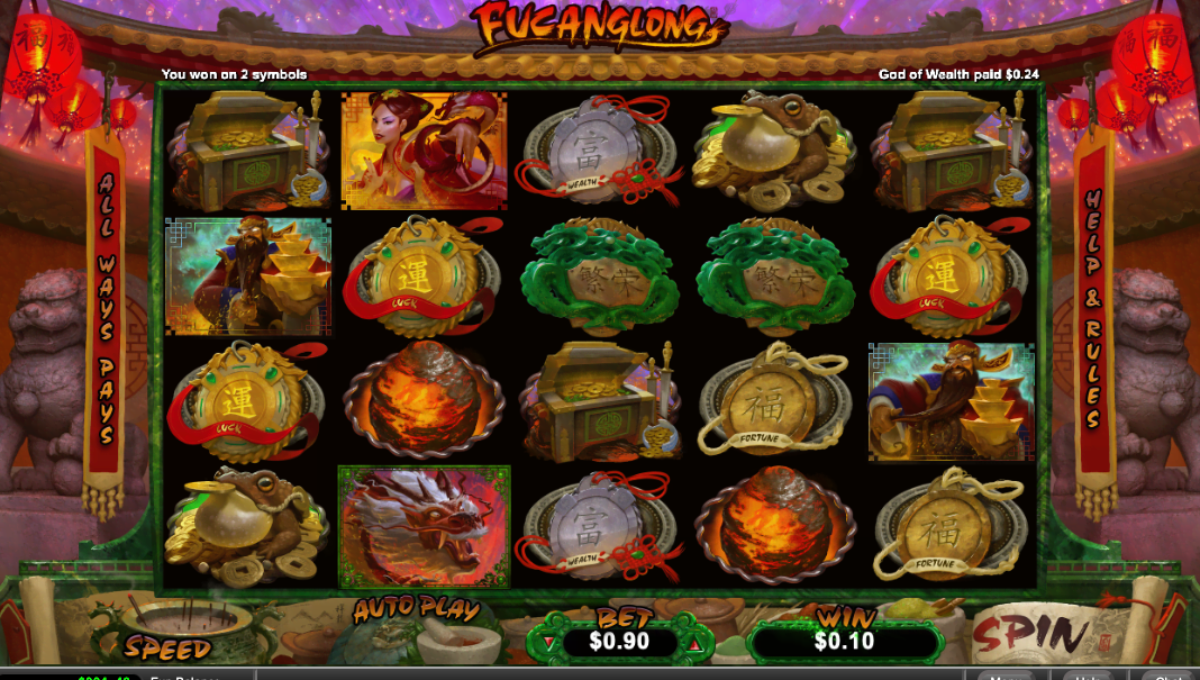 Real Time Gaming (RTG) software powers this new five reel slot machine. Fucanglong is a brand new all ways pays slot machine, which is the first game that Real Time Gaming (RTG) has released in 2017.