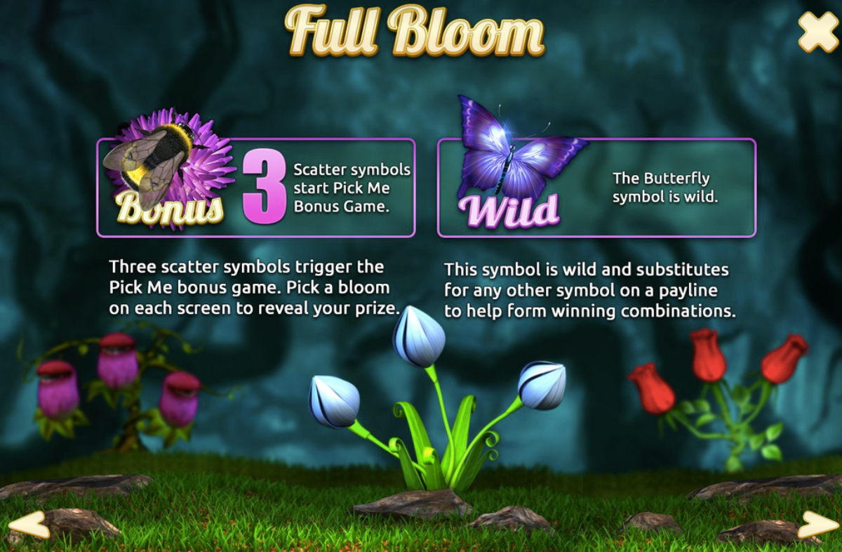 Slotland has some good games, and Full Bloom has joined them. Overall this is not the best game at Slotland, but it is fun to play and has easy wins. There is a Pick Me bonus round, scatter wins and wild symbols. The three-dimensional graphics are excellent and are no surprise based on the high-quality Slotland entertainment releases plus nice sized multipliers!