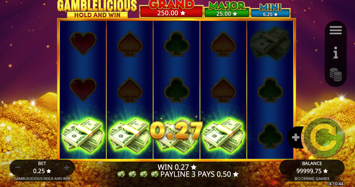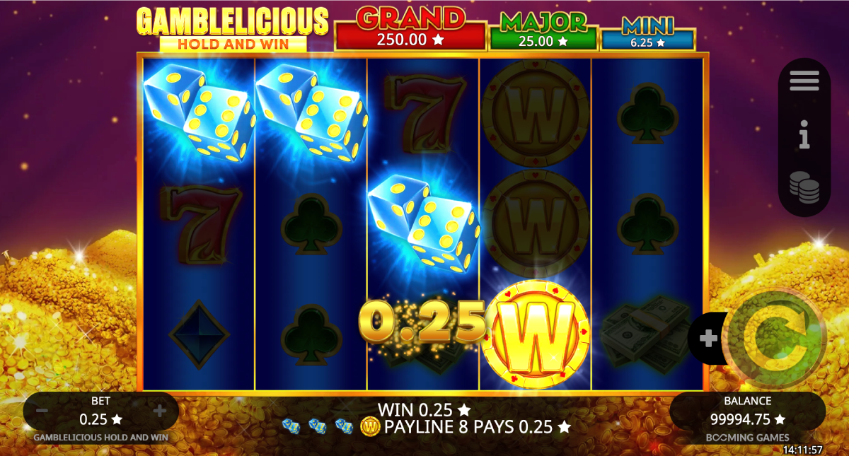 The most popular variant on the site is Hold and Win, in which you wager £10 for 100 spins. The minimum stake for a low roller is £0.25 per spin, whereas top rollers can wager up to £250 per spin. Gamblelicious’ theoretical RTP is then 95.90 percent.