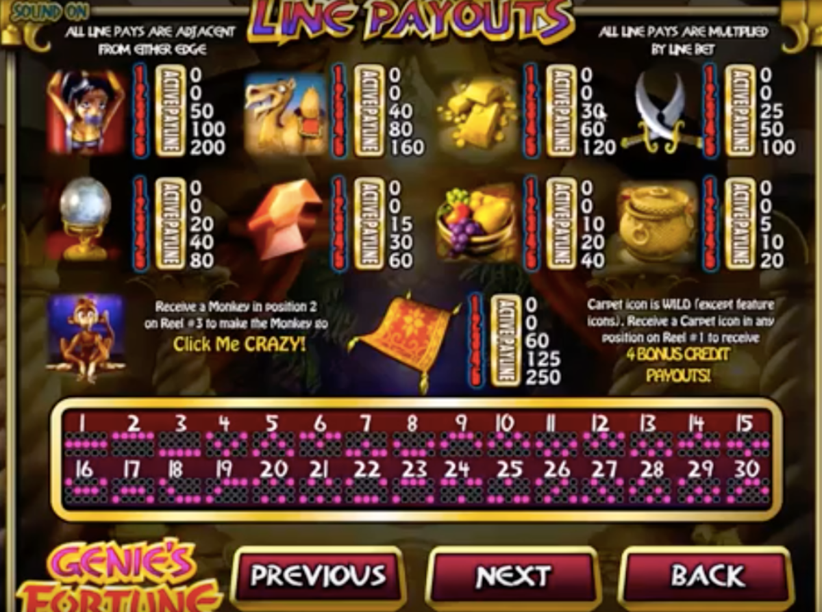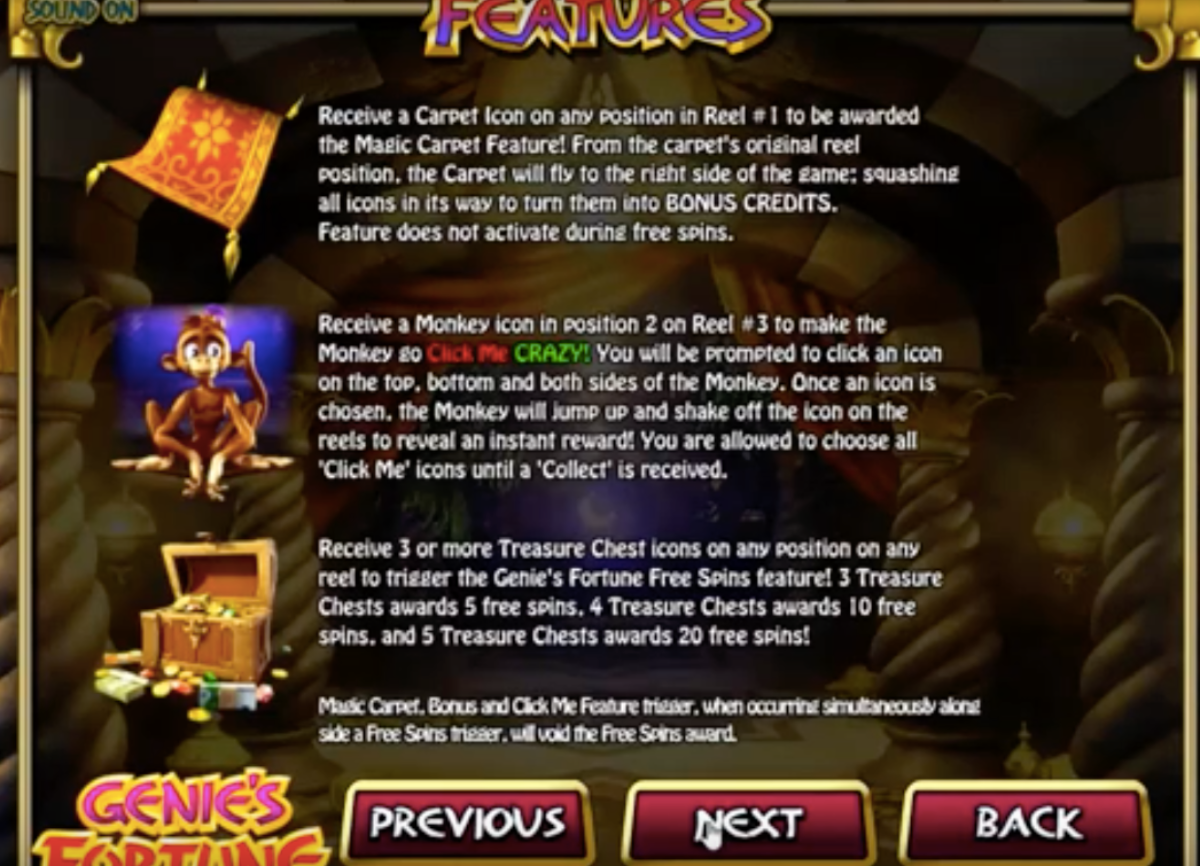 Genie’s Fortune has some of the best graphic set of all of the three-dimensional slot machines in our opinion. There are some fun animations with some Arabian and Aladdin deemed icon that real payout money. In addition to the flying carpet while symbols, you will see some free spins bonus rounds as well as the best Genie bonus on this side of Arabia.