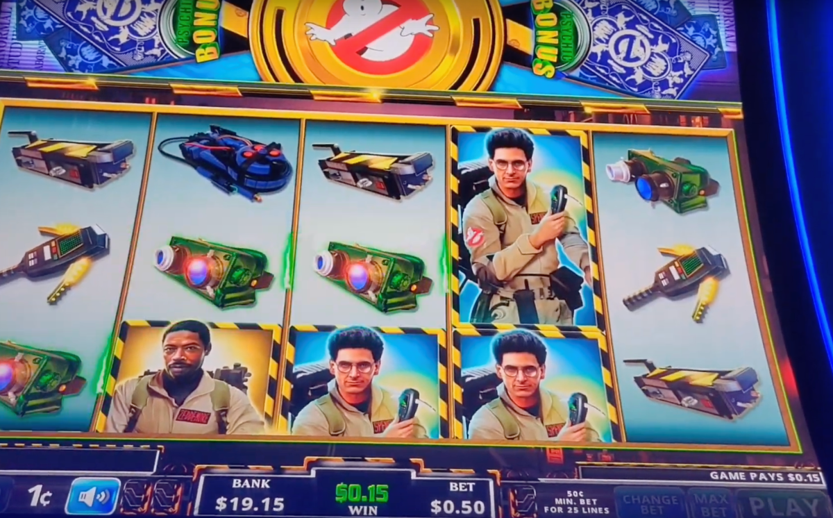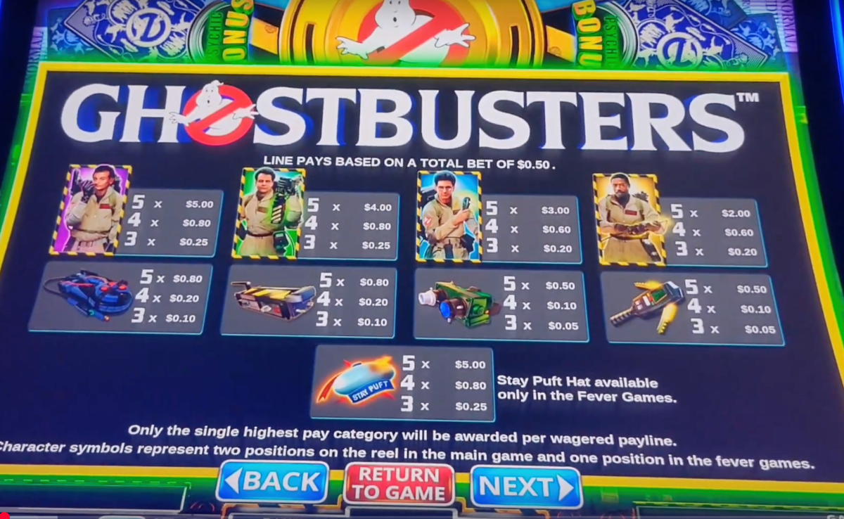 While playing Ghostbusters, you will have the opportunity to participate in several bonus games. One of these games, The Psychic, involves guessing the card Venkman is holding. In the Stay Puft bonus game, marshmallows will fall from the sky and stick onto symbols to increase earnings on wins.