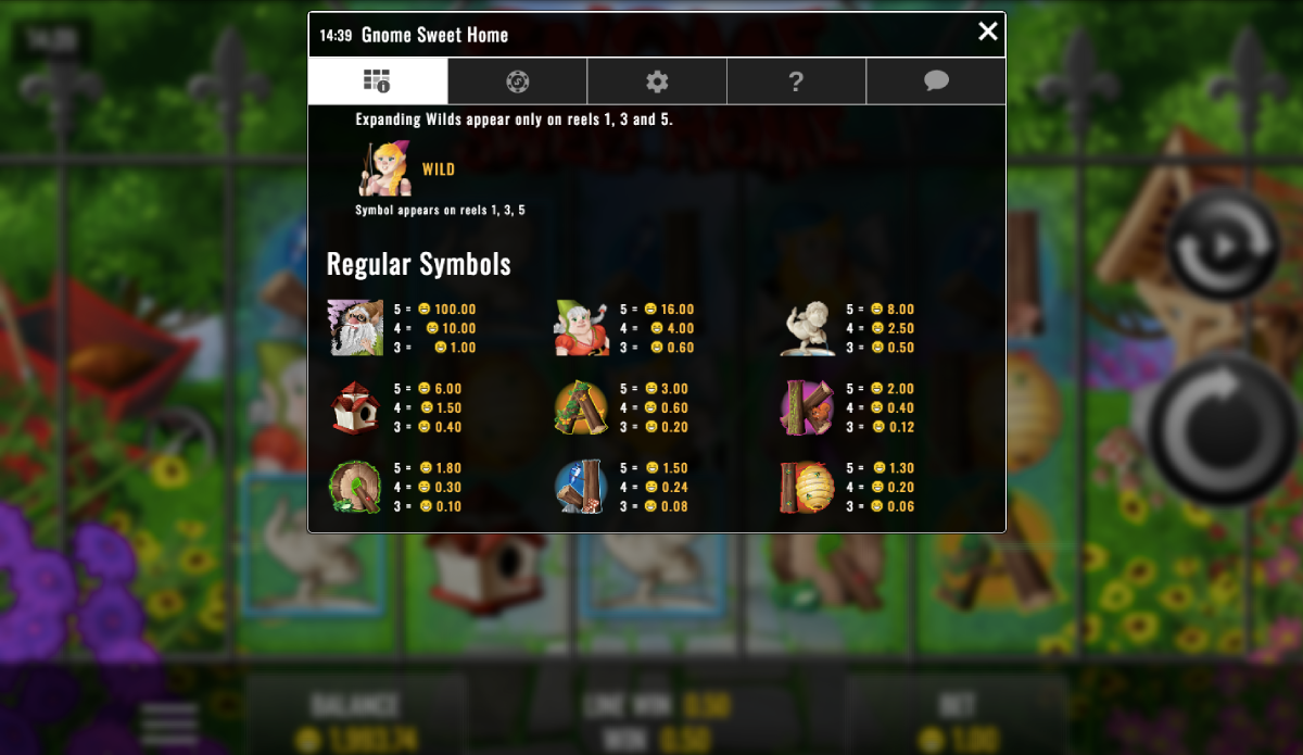 The way to win money instantly is to line up three or more matching symbols and help Mr. Gnome create an impressive garden and make his home sweet home. When you land three or more of the Mr. Gnome character symbols on the reels, you will win the bonus game.