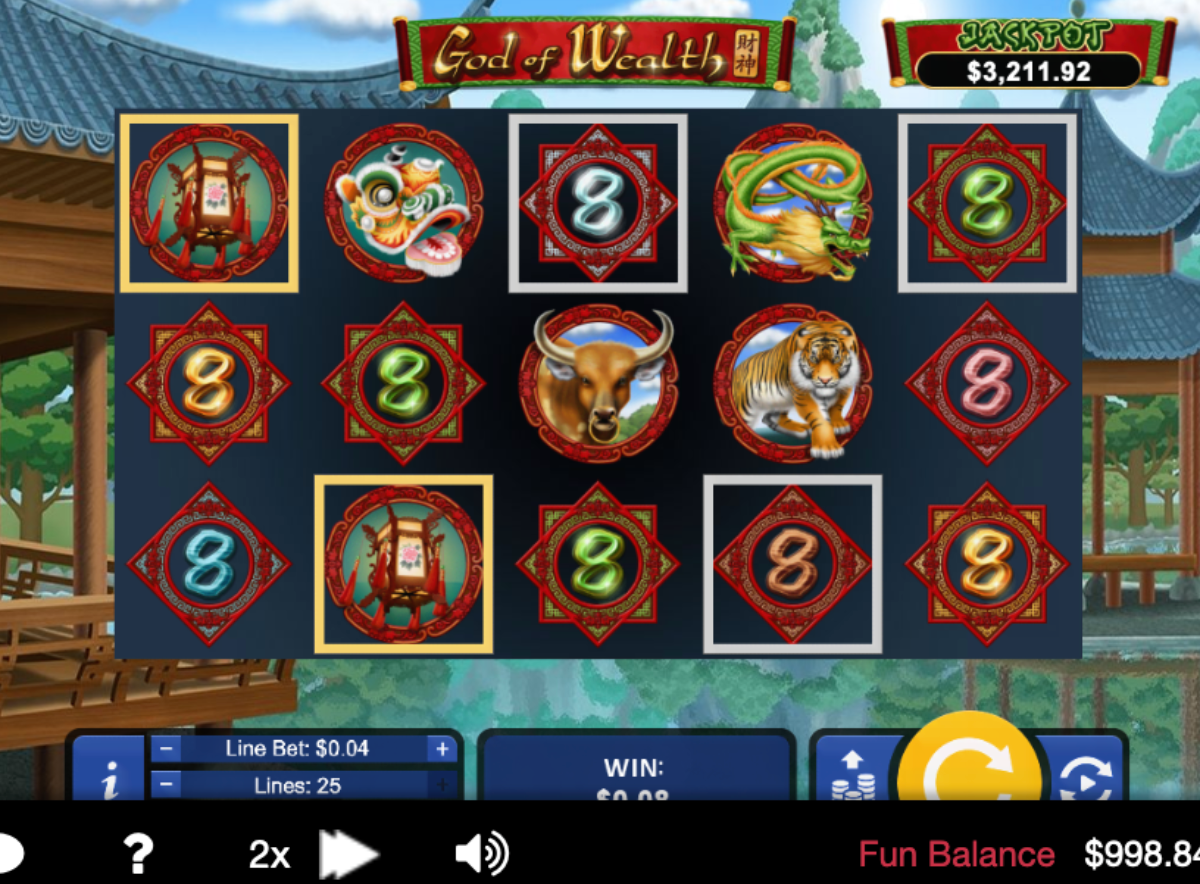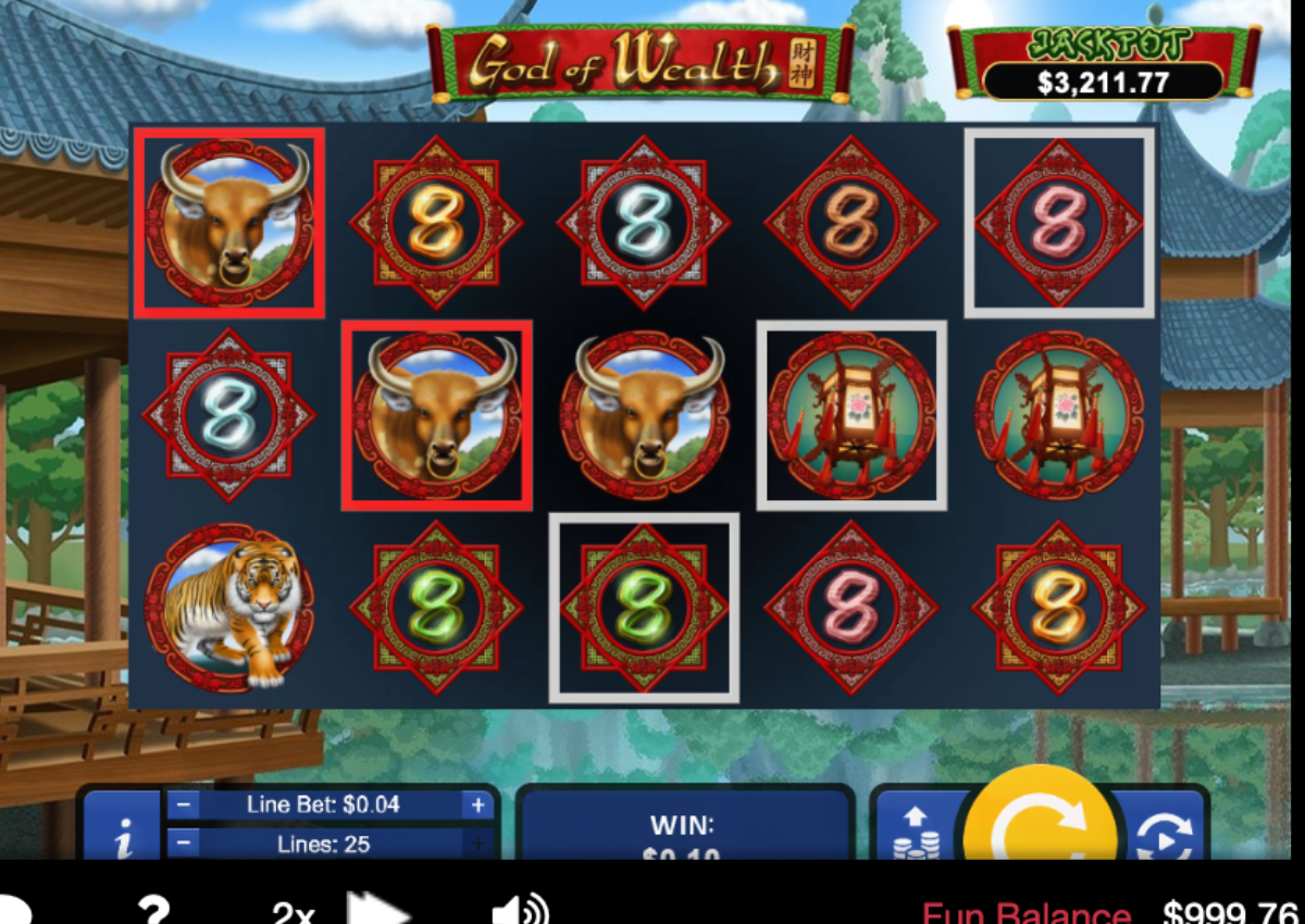 God Of Wealth is a five reel video slot machine that powers Real Time Gaming (RTG) software. This five reel video slot game features an Asian theme and features twenty-five pay lines with a progressive jackpot.This game released in January 2016 It was the first game that Real Time Gaming released in 2016. The last game that they released in December 2015 was The Nice List and the mobile version of Santastic.