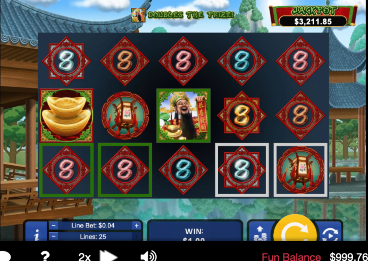 The symbols that you will see when you spin the reels are spectacular. Enjoy the lion, different colored 8’s, Dragon, God of wealth, gold ingot, ox, dragon head and the lantern.
