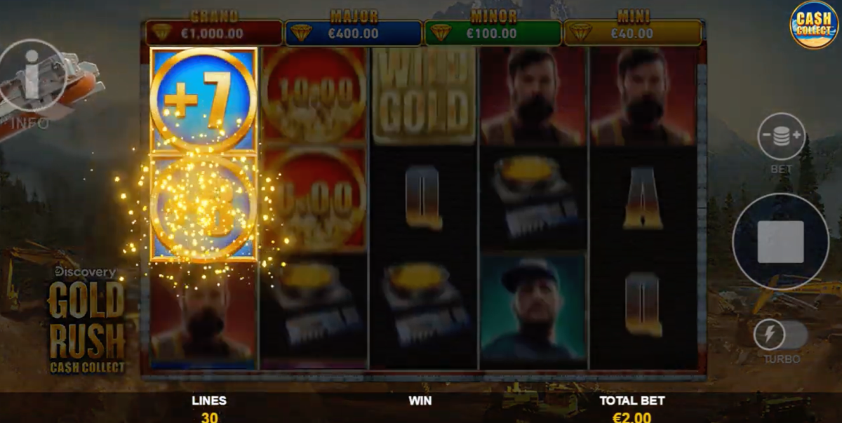 To clarify, in addition to collecting symbols for payouts, the Gold Rush Cash Collect slot has 4 fixed jackpots – Mini, Minor, Major, and Grand – that are worth 20x, 50x, 200x, and 500x the stake.