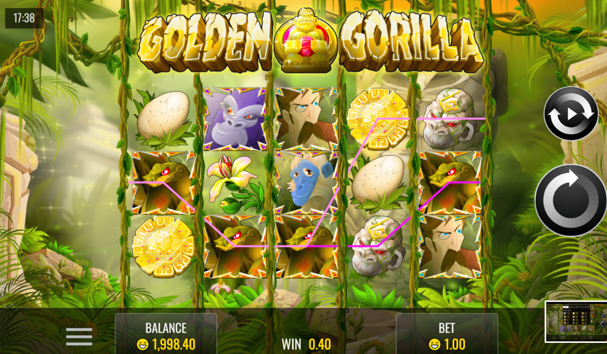 The epic adventure game costs small, 0.01 coins per spin allows a player to begin hunting for the golden gorilla.