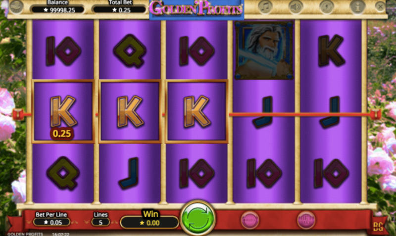 The slot game Golden Profits is based on Greek mythology and features three powerful Greek deities. The most valuable character in the game is Zeus, the god of sky and thunder, who will be recognized by many players.