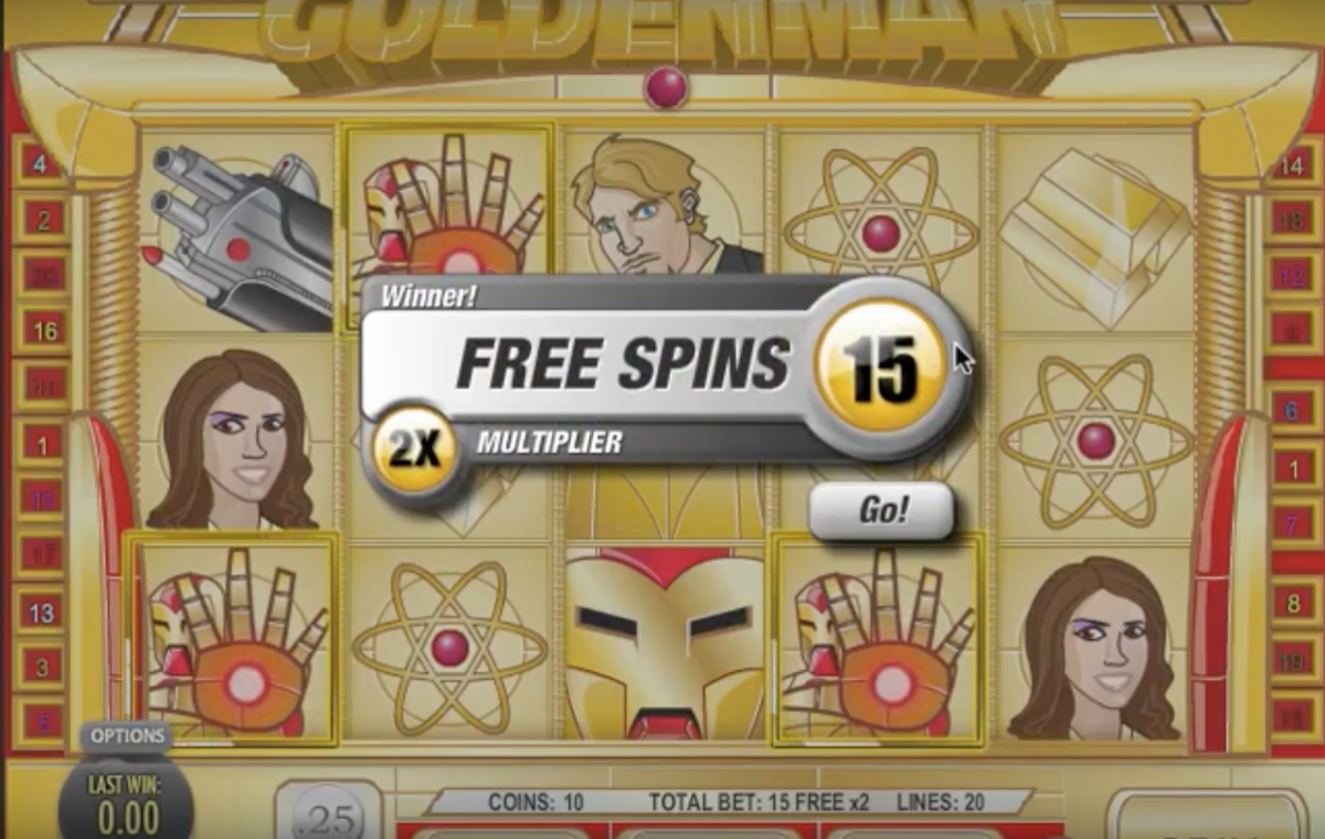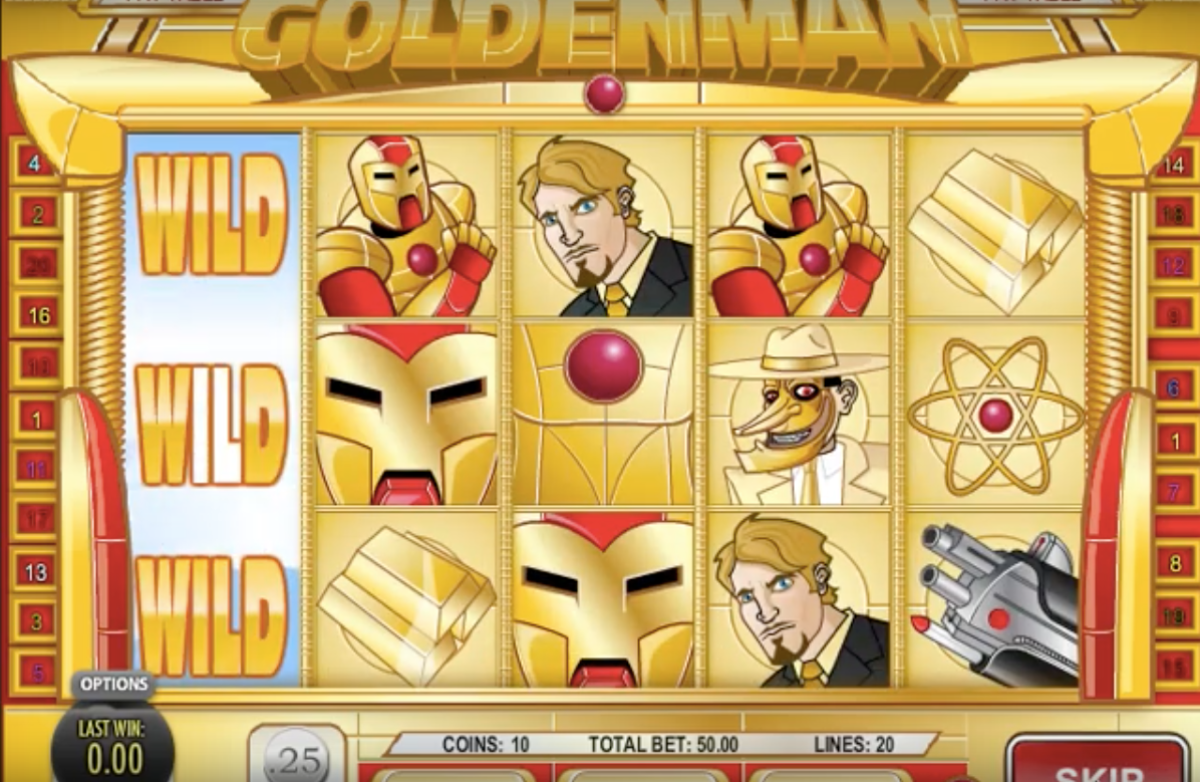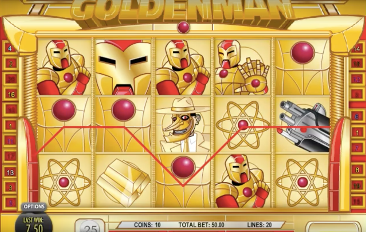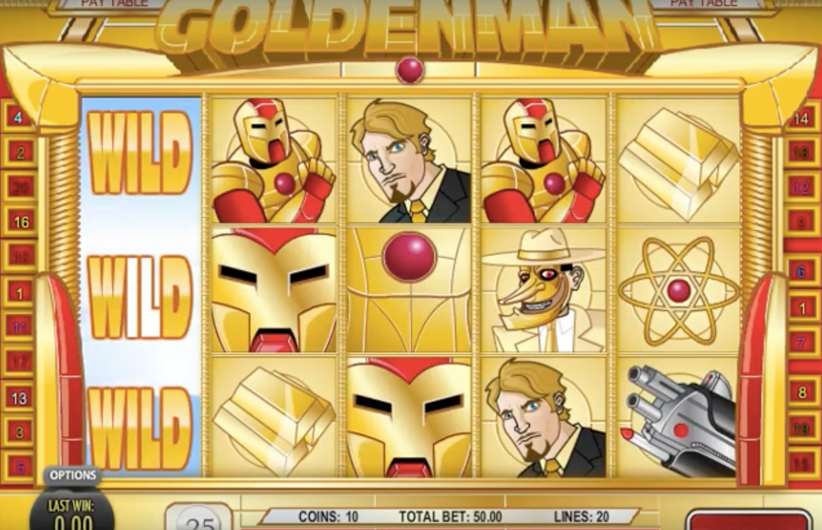 Fans of the superhero Ironman from the Marvel magazine are in luck as there is about to meet the Superhero loosely based on the Ironman Marvel Comics character Goldenman. If you remember Ironman’s assistant Pepper Potts, you can image yourself as him as you give these wheels a spin. The Golden Man online slot game features five reels with 20 pay lines and a 750 fixed coin jackpot to win.