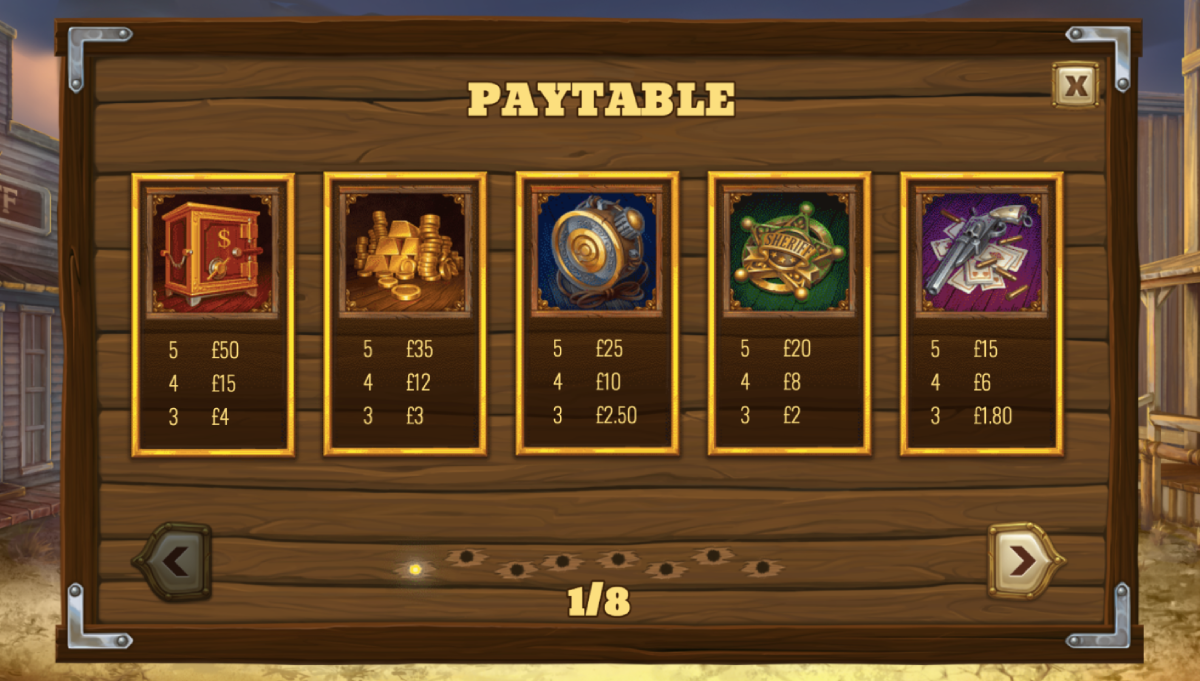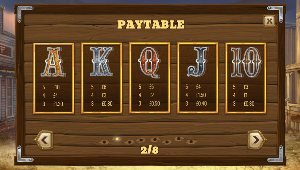 This wild west themed video slot machine has three different progressive prizes. The way to unlock this feature is to land one of the good, bad, or ugly symbols on the reels. Once you land one of the good, bad, or ugly symbols on the reels, you will trigger the ‘Graveyard Shootout’ free spins bonus game. Once you trigger the bonus game, you will be able to win one of the three progressive prizes.