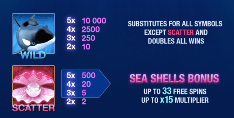 The paytable shows that the adorable animated underwater animals in the game can result in larger winnings. The stunning yellow-striped Angel Fish brings the largest win, followed by the starfish and the seahorse. However, the shark and the turtle symbols offer even bigger wins.To win while playing, you need to get two matching symbols on a winning payline. These two characters, just like the Number 9 symbol, should appear on consecutive reels starting from the leftmost one. That’s why these symbols are highly coveted during gameplay.
