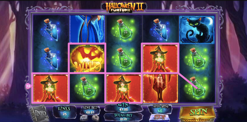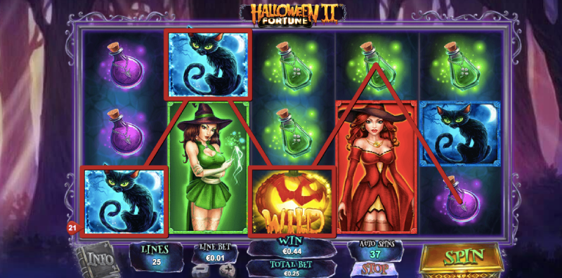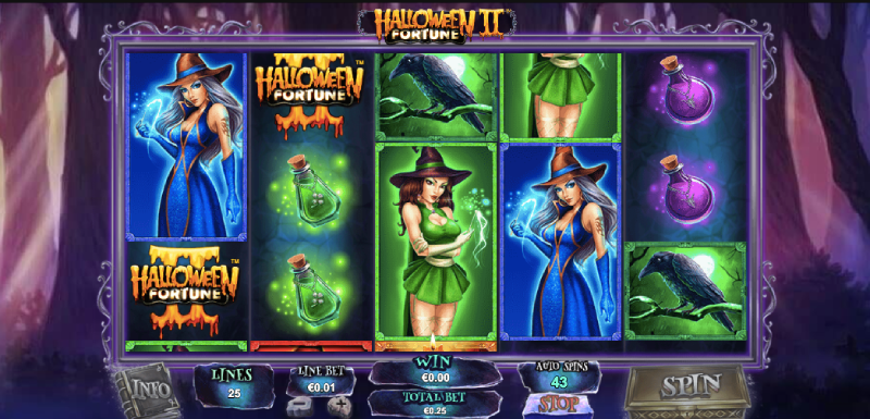 Halloween Fortune 2 is a slot game created by Playtech and a follow-up to the original Halloween Fortune. The game has 5 reels and 25 paylines, and a minimum bet of 25p can be placed on any device. The game prominently features stacked witch symbols and revolves around the Free Games feature.