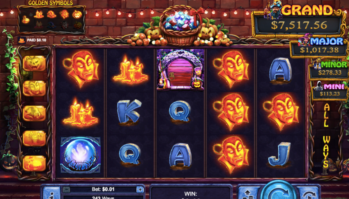 Indeed, the all-new five-reel Halloween Treasures is a blood-curdling game that offers two hundred forty-three ways to win. Furthermore, you will find yourself having fun with this spooky, and scary game looking for chances to score cauldrons of cash. Additionally, you will be on the hunt for coins that are magical, free spins that include a scary graveyard, two different wild cards, and a crystal ball that is the scatter symbol.