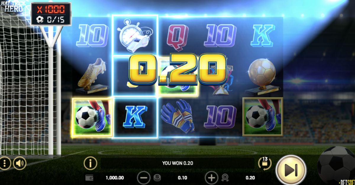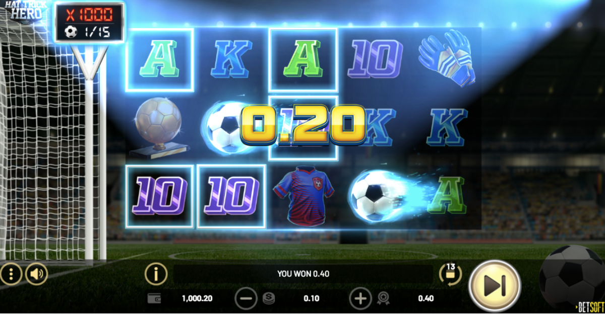 When you watch the football sticky wilds, they come out of the left reel and hit the back of the net. If you get 15 of these in one session, you win 1,000x from going into the score meter.