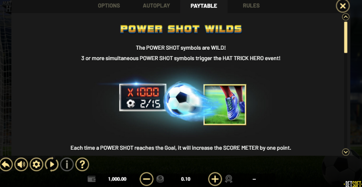 The power shot wild is a symbol on the slot machine that can substitute for any other symbol. When you land 1 or 2 power shot wilds, they will become regular wild symbols. If you land 3 at the same time, you’ll play the Hat Trick Hero feature.