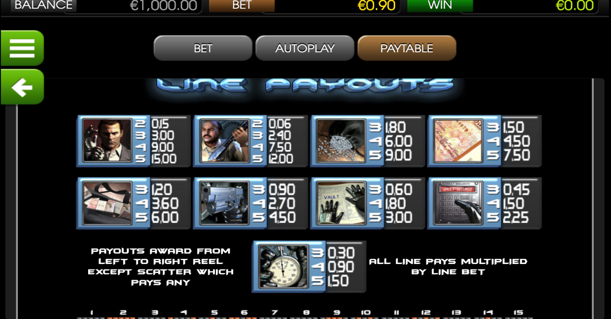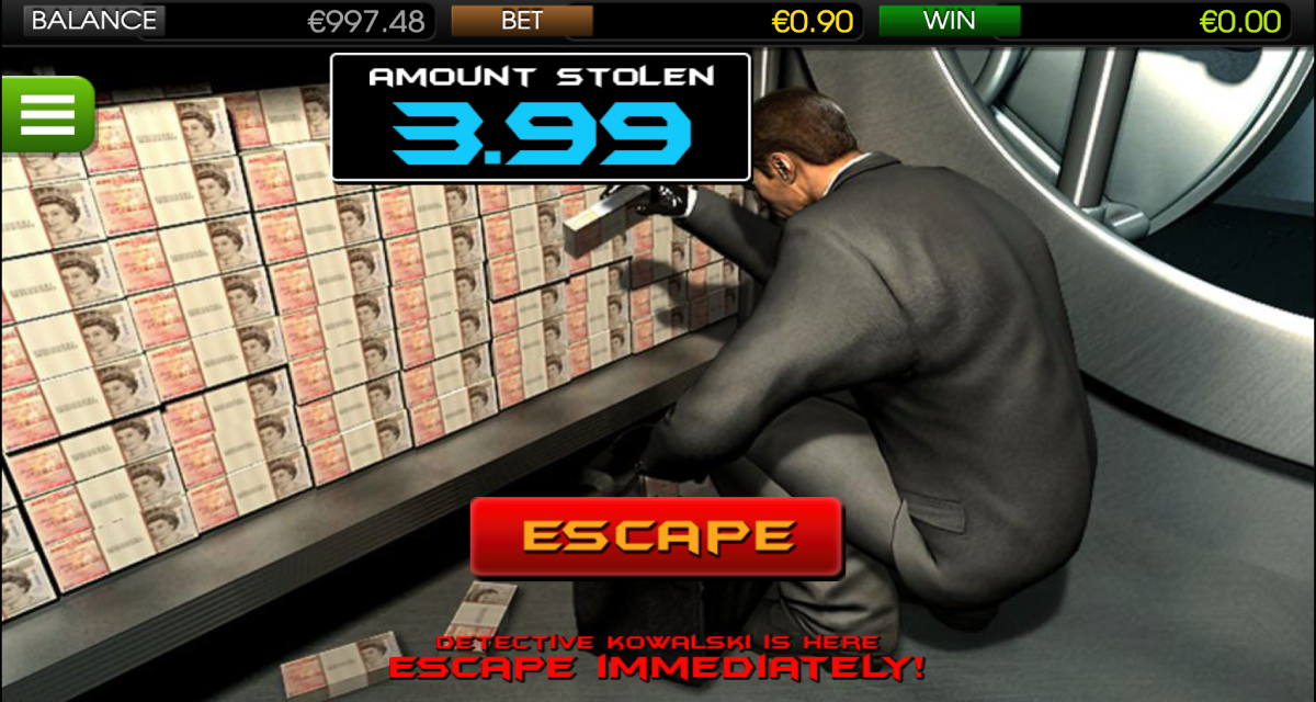 Heist has five reel and 30 pay lines. BetSoft powers this video slot machine.Like many other BetSoft slots, Heist has excellent 3D graphics that are animated and has a new introduction explaining the detailed storyline. The game is about a cop Detective Kowalski and a villain/robber/ Neil Quaylan. Neil Quaylan has been doing scores for over seven years. The robberies are profitable.