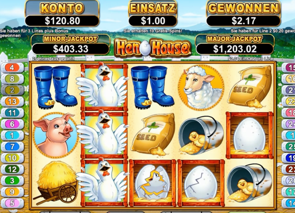Real Time Gaming developed a brand new online slots game called Henhouse in 2013. With its farmyard theme, Hen House is a brand new and imaginative way to play slots online, with great graphics. The game involves a 25-pay line slot machine, featuring foxes, pigs, hens, and eggs as the icons. Players can win a cash jackpot by scoring the required combination of farmyard characters or entering the exciting bonus game.