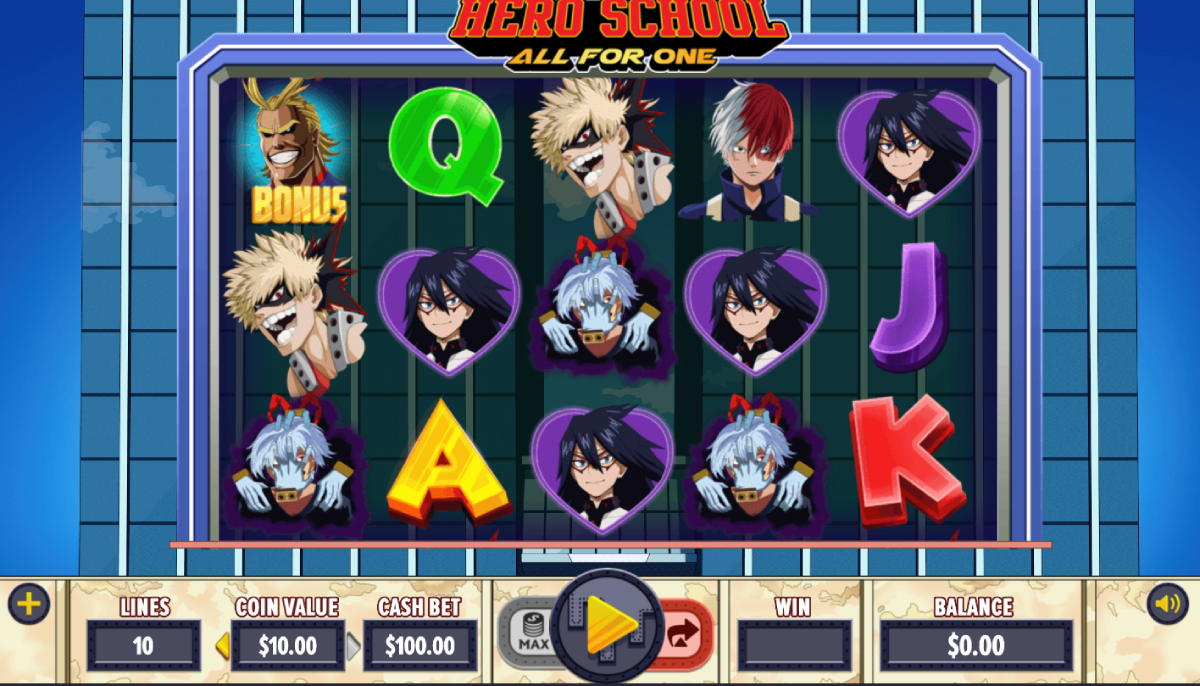 Would you want to have superpowers? Are you sick of being Quirkless? Hero School could help you overcome your Quirklessness. This online video slot, inspired by My Hero Academia, will take you on a unique adventure through a school where superheroes are trained.As you spin the reels, you’ll be able to encounter other heroes-to-be and some who have already earned special abilities β all of which may provide large payouts to a lucky winner.If you enjoy anime, Hero School: All for One is a must-see.